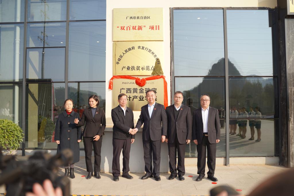 12月18日上午,广西黄金珠宝设计产业学院开学典礼暨揭牌仪式在广西黄金珠宝产业园举行。我校校长吴郭泉,副校长朱其现;平桂区委书记朱建军,副区长吴红丹,教科局局长吴昱梅;我院党委书记李素云,院长张锋,党委副书记、纪委书记林成出席,并为受聘企业导师颁发聘书和为广西黄金珠宝设计产业学院揭牌。