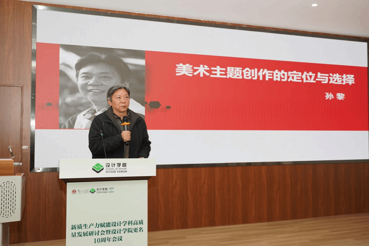 孙黎教授以《美术主题创作的定位与选择》为主题作主旨发言,分享优秀作品,强调主题创作内容与形式的叙事性和情节、动态、形象的形式逻辑,以及生活真实与艺术真实的关系。
