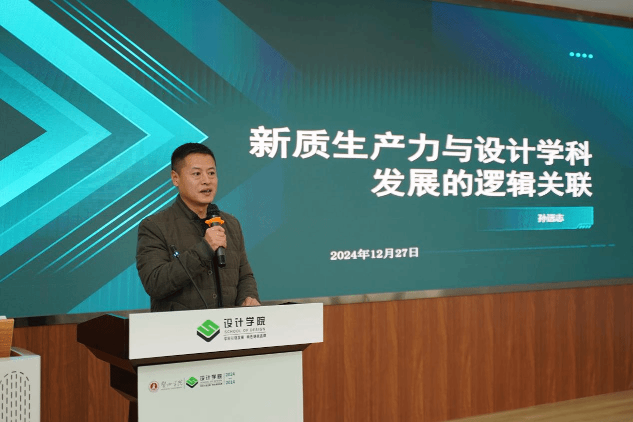 孙远志教授以《新质生产力与设计学科发展的逻辑关联》为主题作主旨发言,阐述互鉴、协同和创新三个层面,强调设计学科必须承担起更加重要的责任,成为推动社会、科技与生态和谐发展的重要力量。