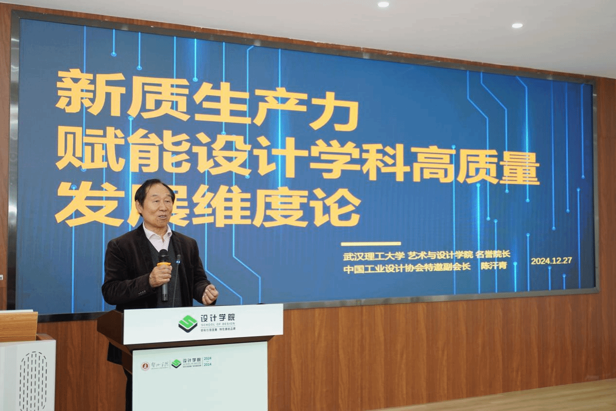 陈汗青教授以《新质生产力赋能设计学科高质量发展维度论》为主题作主旨发言,强调从产教融合、艺科融合、以新促建的新维度,构建创新引领、服务社会、学术健康、赋能新质生产力发展的学科生态体系。
