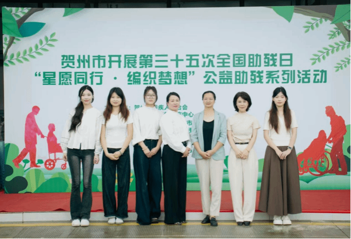 2025年5月16日,太阳集团tcy8722教师第一党支部、学生第一党支部参与贺州市残疾人联合会主办的贺州市第三十五次全国助残日“星愿同行·编制梦想”公益助残系列活动。活动以“非遗润心,与爱同行”为主题,通过非遗手工艺教学与作品展览,为自闭症儿童探索艺术疗愈新路径。