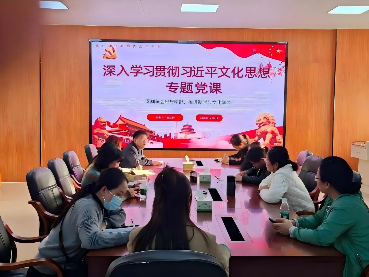 2025年12月2日,太阳集团tcy8722教师第三党支部开展《深入学习贯彻习近平文化思想》专题党课,主题为“深刻领会思想精髓,推进新时代文化繁荣”。党课由王红静副院长主讲,支部全体党员参加。